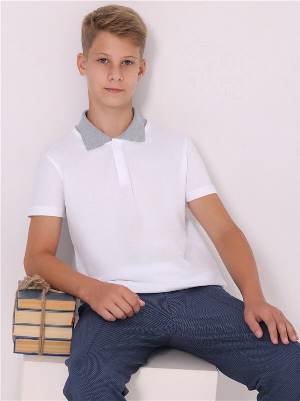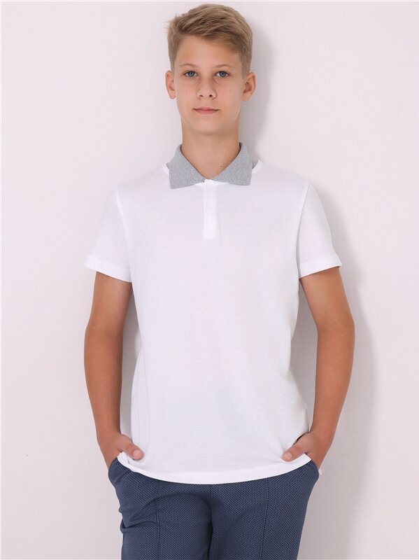 Футболка поло для мальчика школьная форма хлопок Апрель Апрель1ПДПК4486090/ белый,серый 152-80 информация: