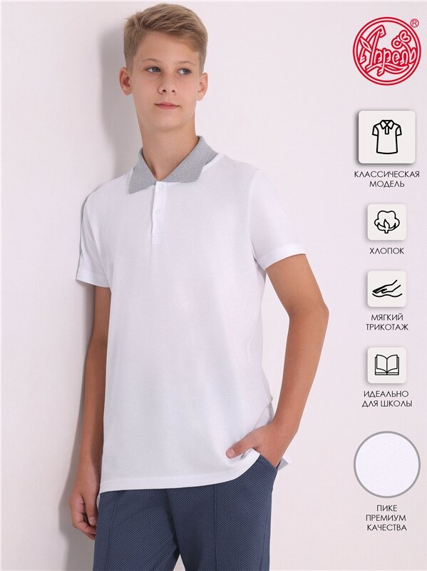Футболка поло для мальчика школьная форма хлопок Апрель Апрель1ПДПК4143090/ белый, серый 146-76