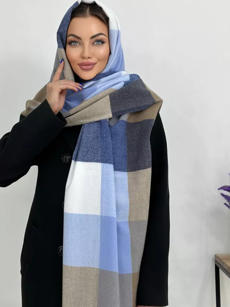 10 цен на Шарф палантин в клетку синий