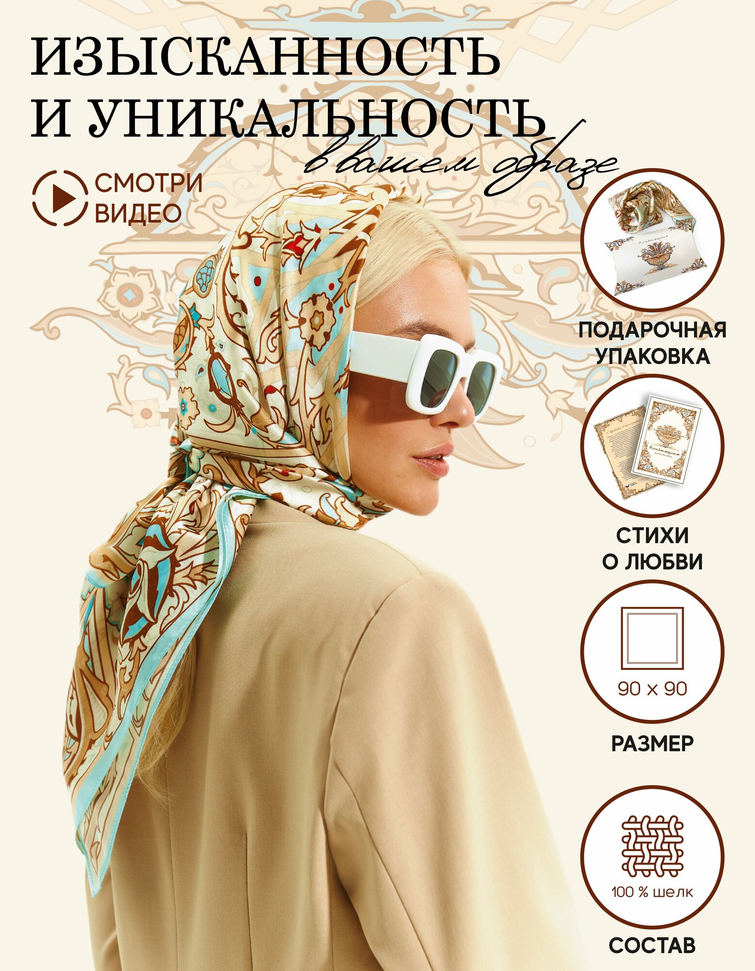 10 цен на Платок "Арабески Арабески в жемчужном" 100% шёлк