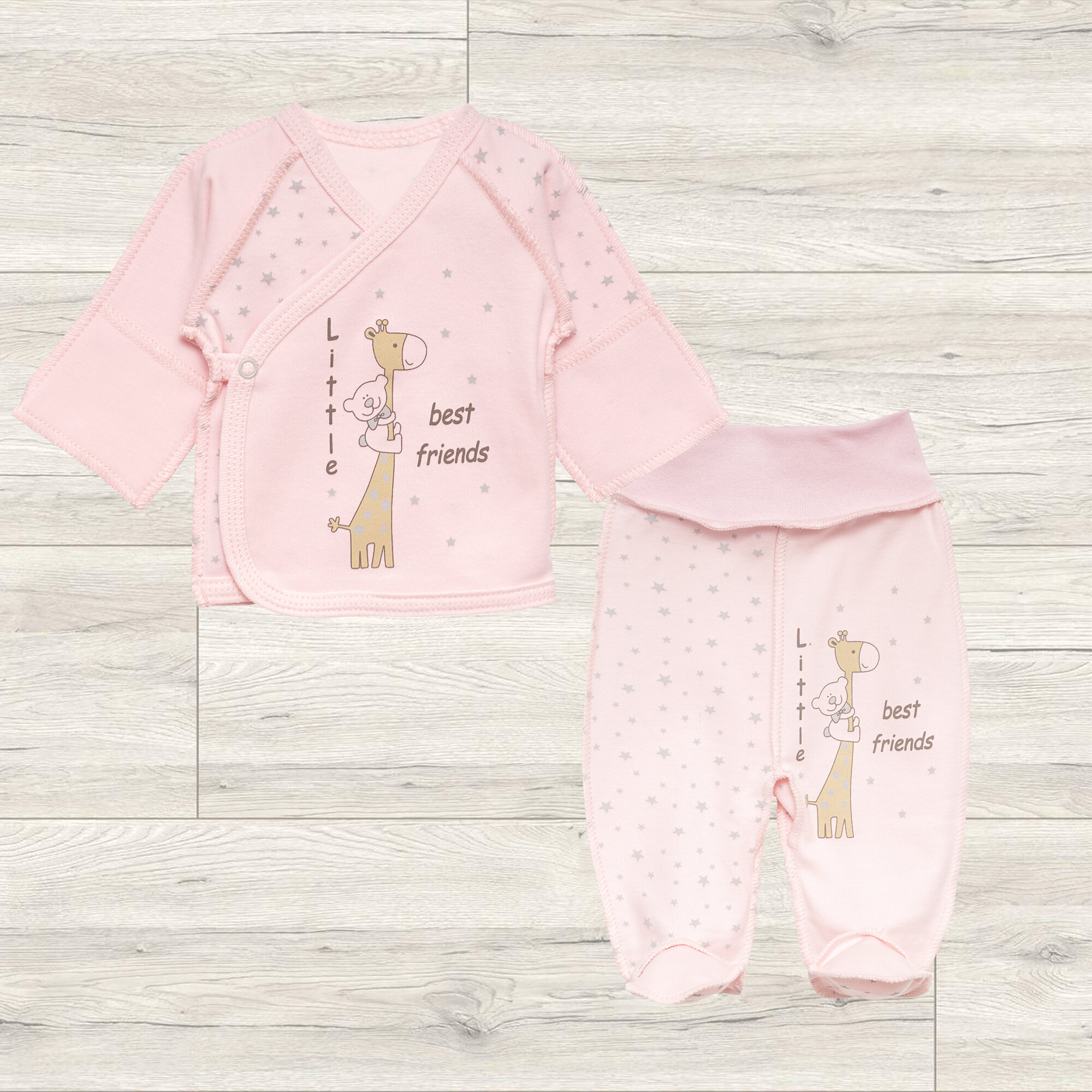 Комплект "Звездочки": распашонка с принтом и ползунки, розовый, 100% хлопок, размер 56 891 ₽