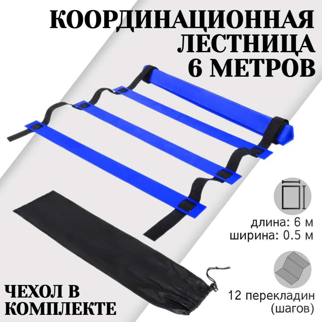 10 цен на Координационная лестница 6 метров 12 перекладин, черно-синяя, STRONG BODY (скоростная лестница для спорта, спортивная координационная дорожка)