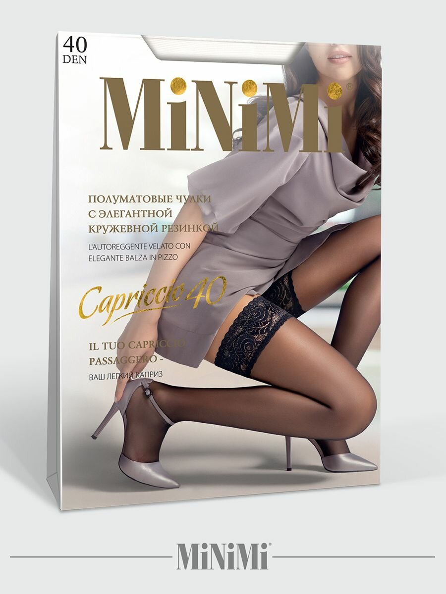 Чулки женские полупрозрачные с кружевом на силиконовой основе MiNiMi Capriccio 40 den, размер 2=S-M, цвет Nero=Чёрный