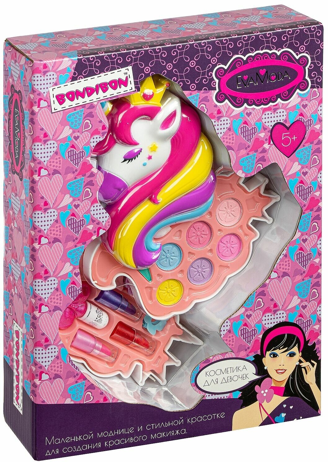 10 цен на Набор детской декор. косметики Bondibon Eva Moda, BOX 27,5x20,5x6,3 см; косметичка-единорог, тени дл