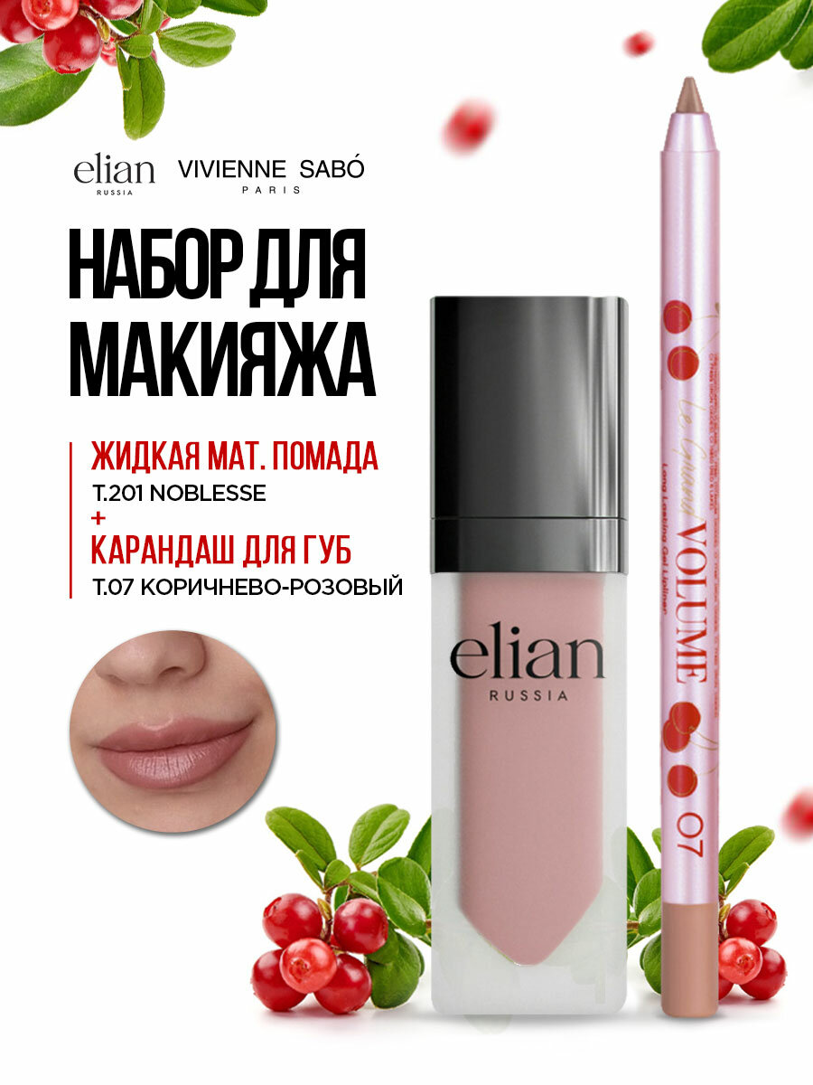 10 цен на Карандаш для губ Vivienne Sabo Le grand volume тон 07 + Матовая помада Elian Russia Superior Matte Liquid Lipstick тон 201 Noblesse