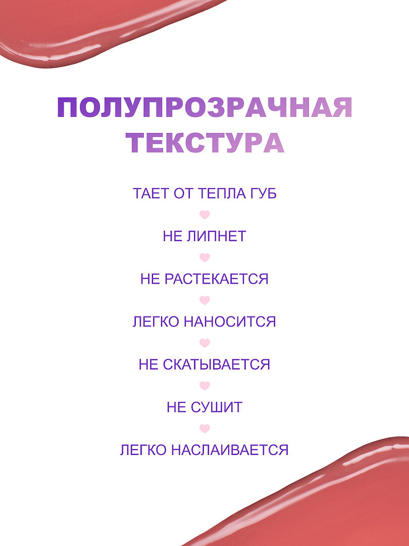 Помада-бальзам Love Generation Wet Dream тающая текстура, глянцевый финиш, тон 02, розово-персиковый, 1,4 г