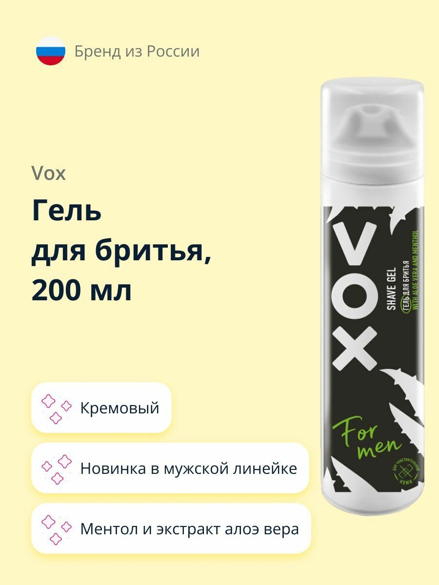 10 цен на Гель для бритья VOX FOR MEN Алоэ вера и ментол 200 мл