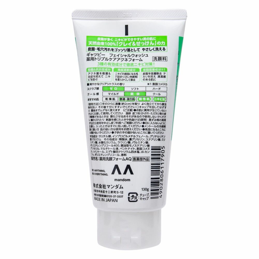 "Mandom" "Gatsby" Пенка для умывания для жирной и проблемной кожи с тремя активными ингредиентами с ароматом цитрусов 130 мл информация: