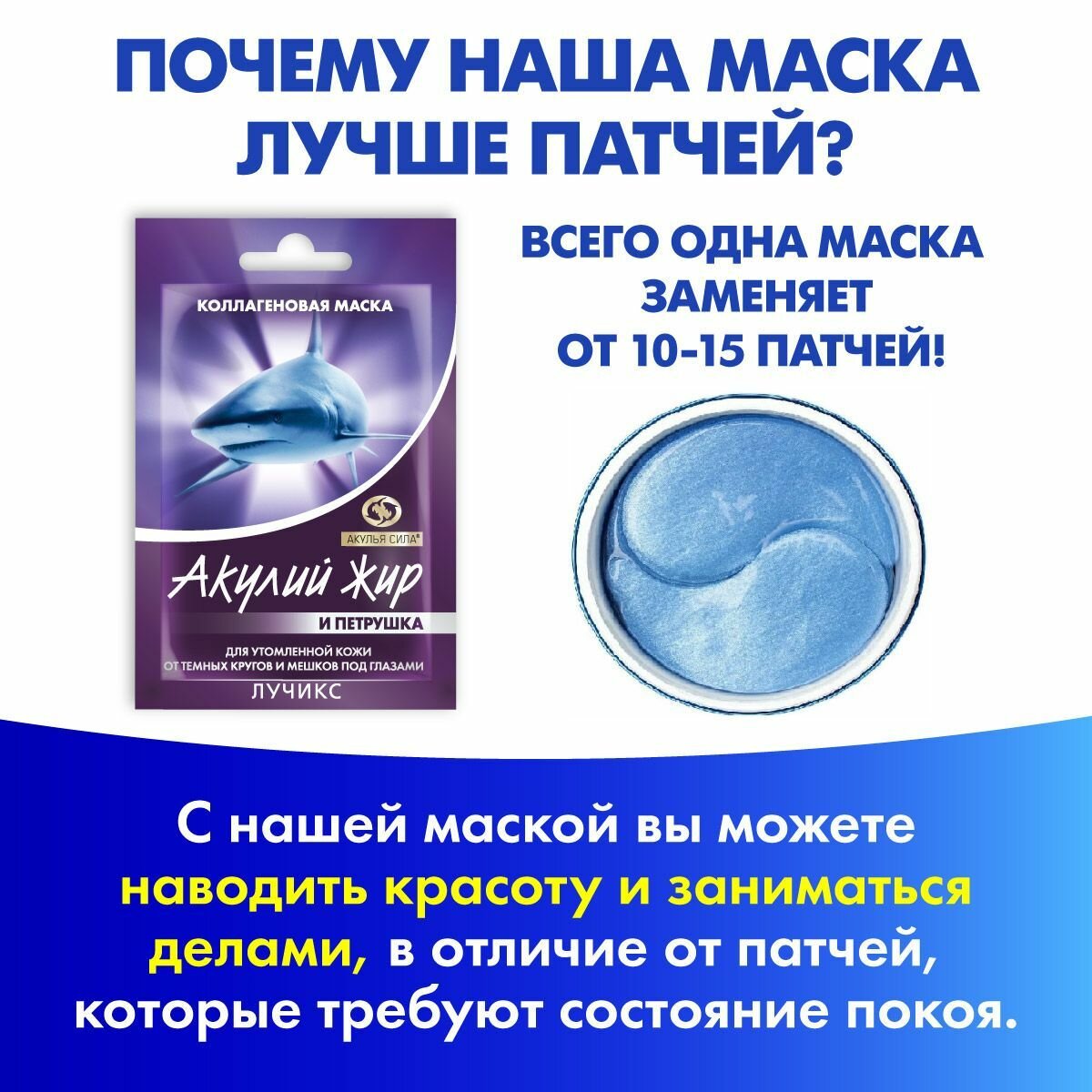 Отзывы на Акулья сила. Коллагеновый набор косметики для ухода, подтяжки, лифтинга лица. Четыре (4) маски (по 12 мл) + два (2) крема (по 50 мл) / лучикс