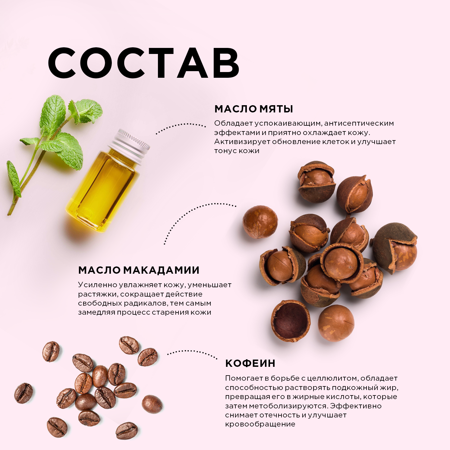 | Способ применения | Нанесите широкими круговыми массажными движениями до полного впитывания на чистую, сухую кожу тела. Особенное внимание уделите проблемным зонам (бедрам, животу, ягодицам, рукам). |