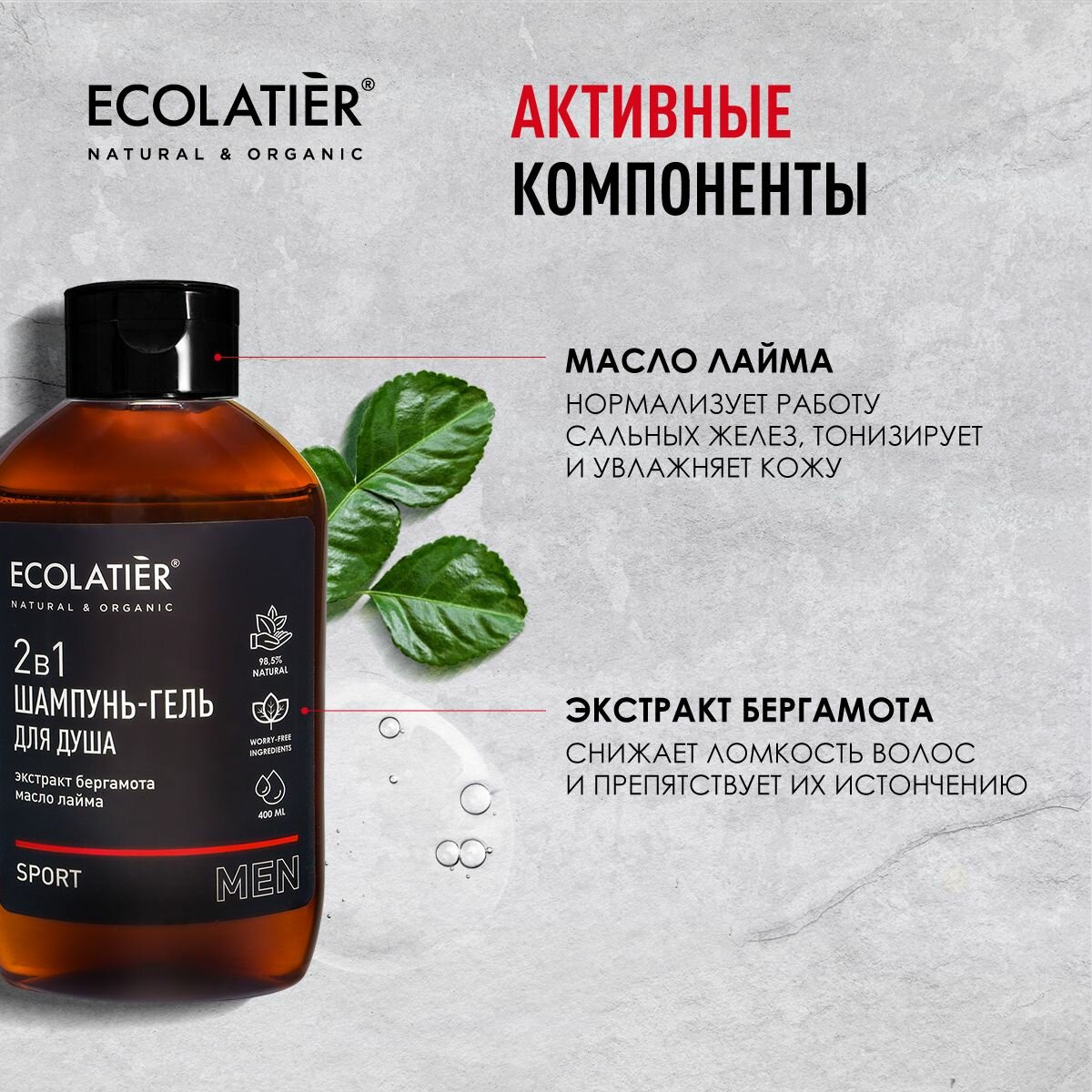 ECOLATIER Шампунь и гель для душа 2 в 1 Sport муж., 400 мл информация: