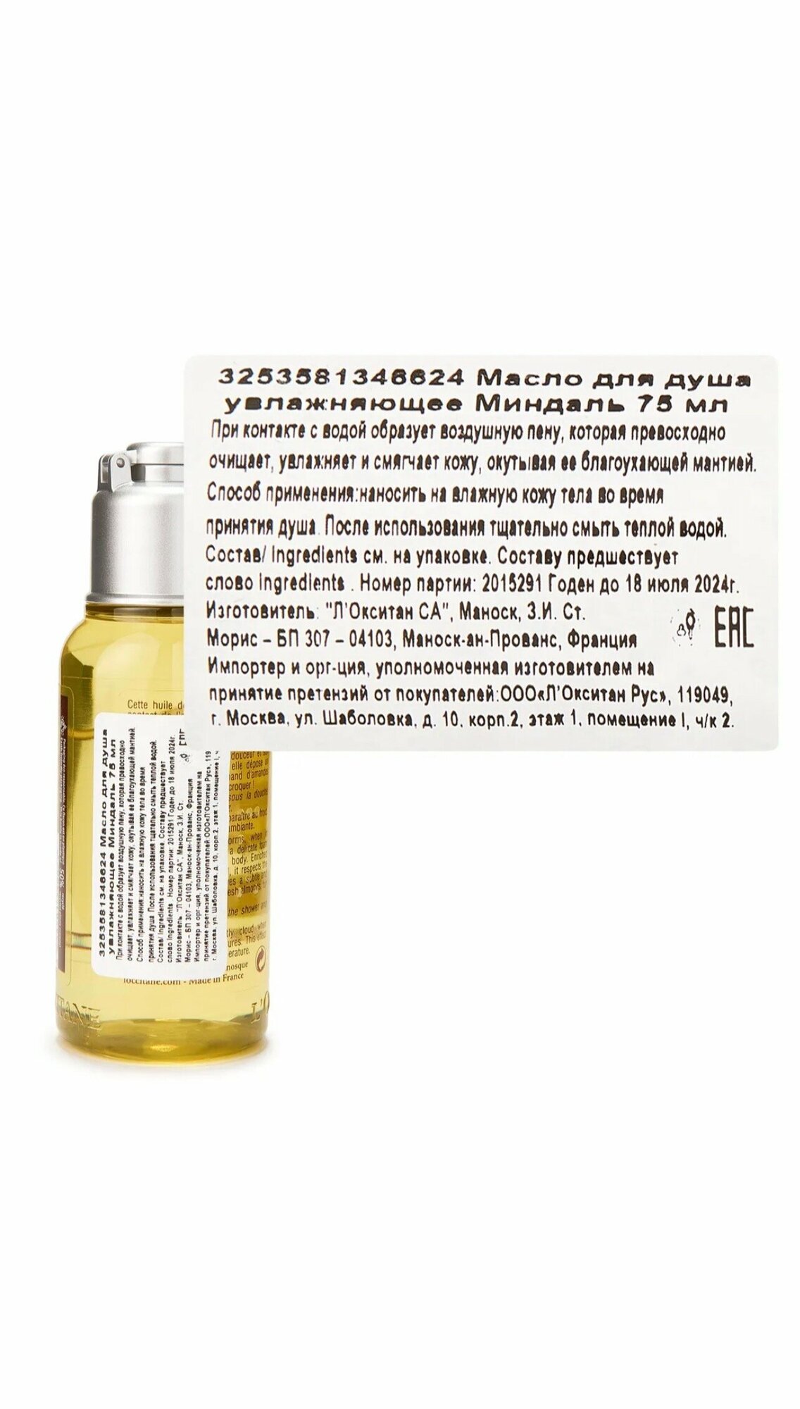 Увлажняющее Миндальное масло для душа L'OCCITANE almond oil, 75 мл информация: