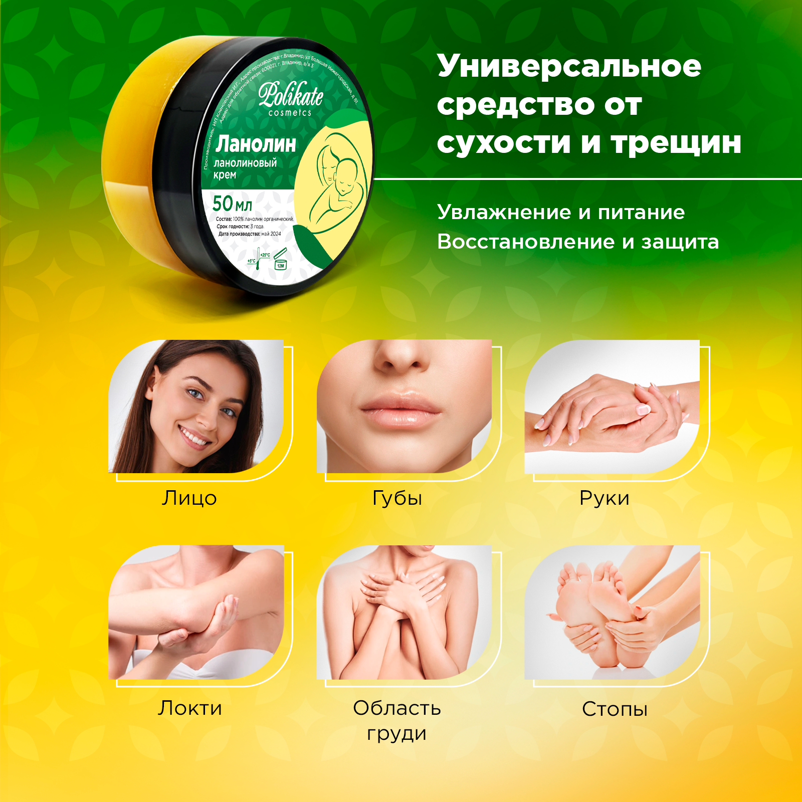 10 цен на Ланолин для сосков от трещин, судокрем под подгузник от опрелостей, 50 мл Polikate
