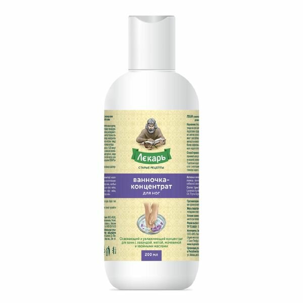 Ванночка-концентрат для ног освежающий и увлажняющий с лавандой, мятой, мочевиной и хвойными маслами Лекарь фл. 200мл информация: