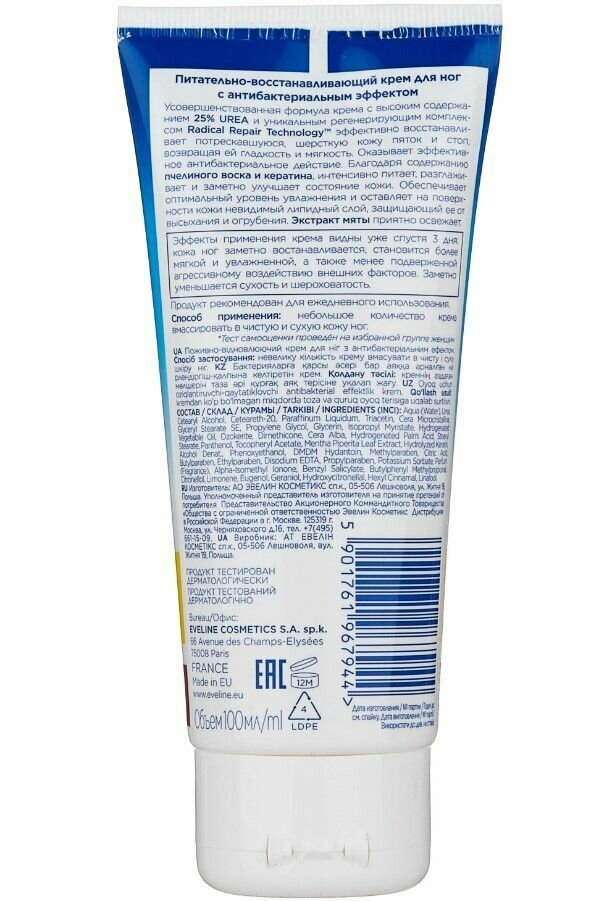 | Способ применения | Небольшое количество крема вмассировать в чистую и сухую кожу ног |