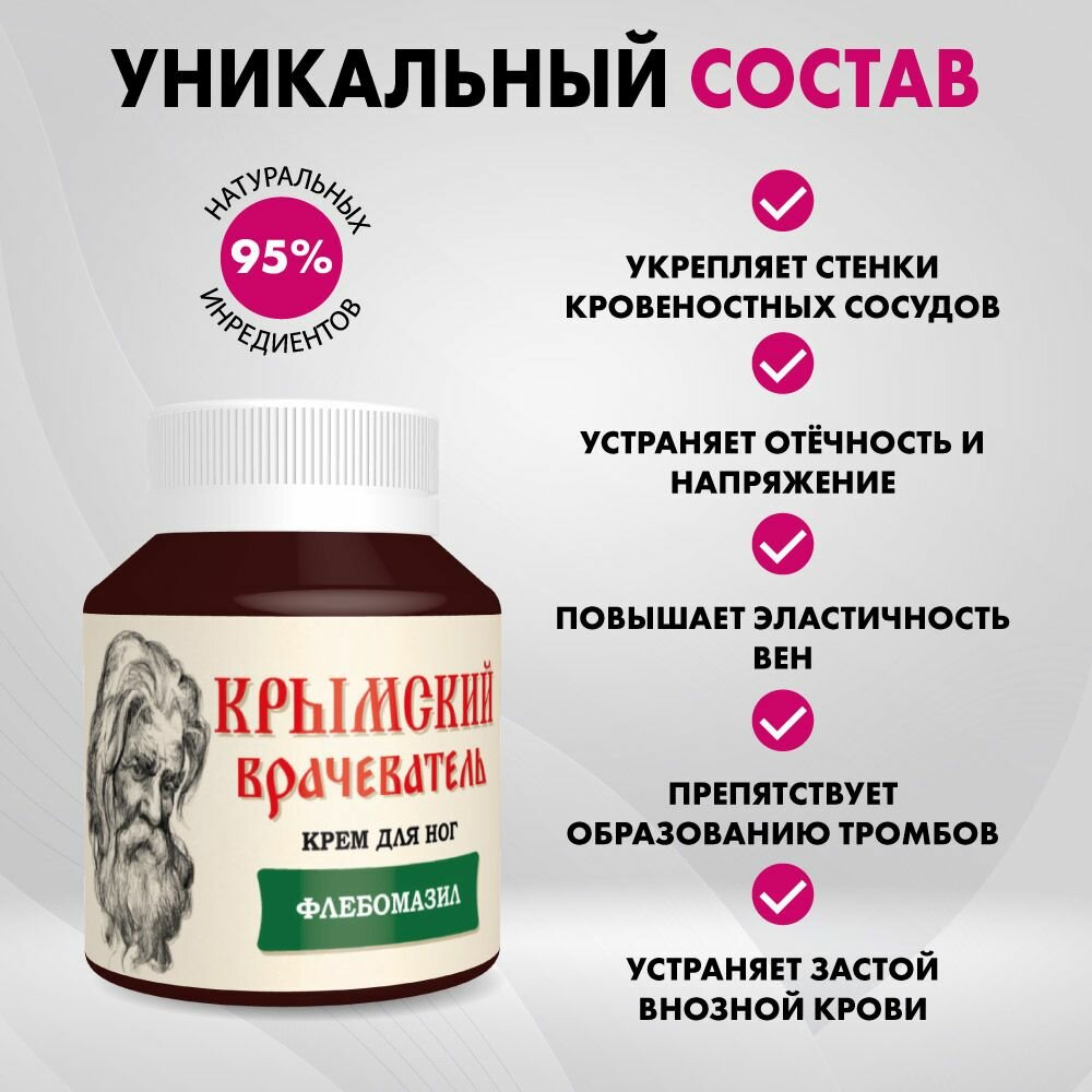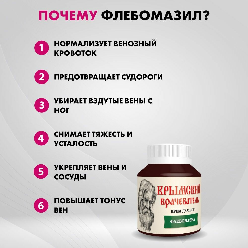 Крем для ног от варикоза и тяжести в ногах, оттромбофлебита Флебомазил. Лучикс 90 мл