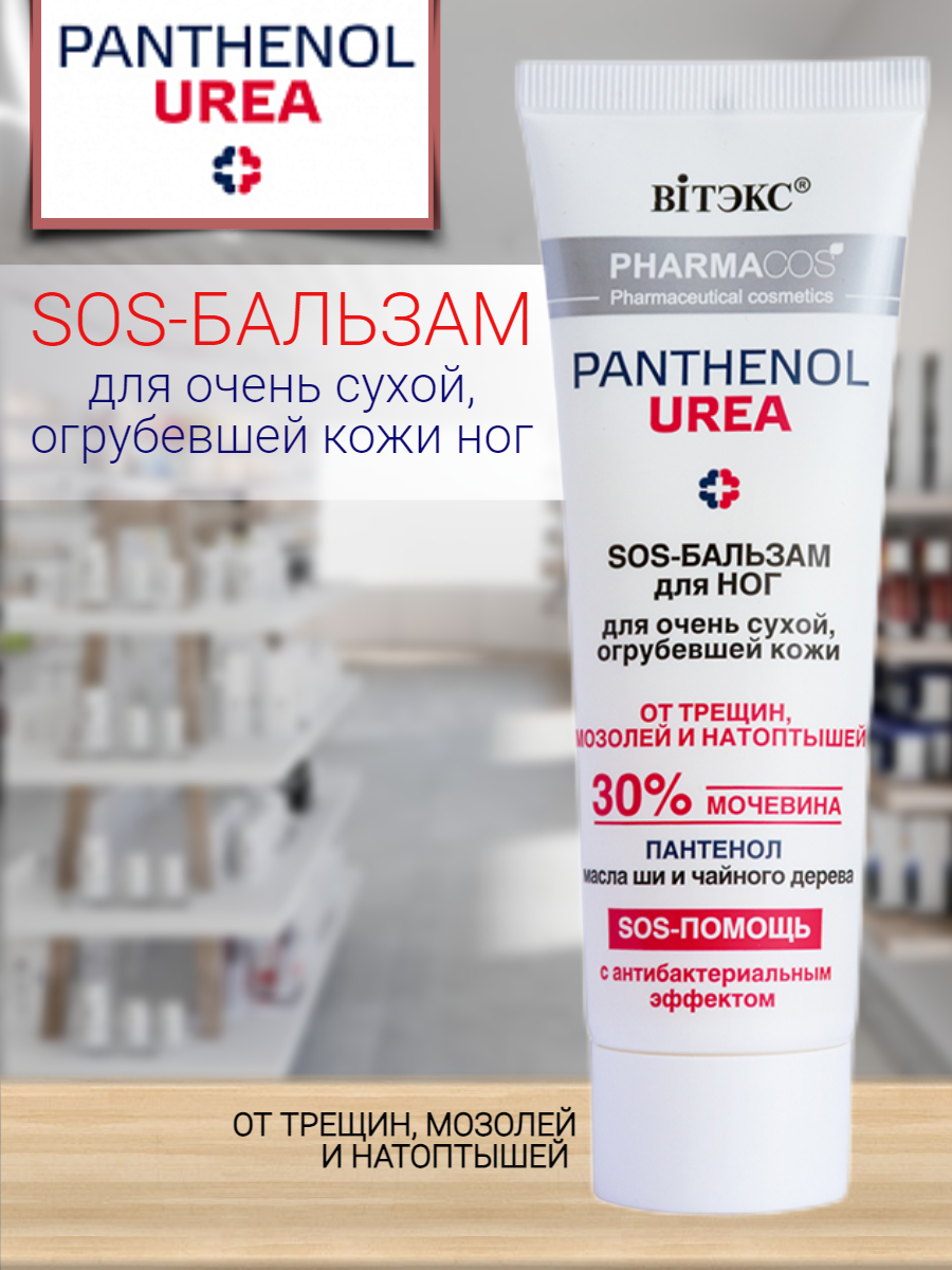 Бальзам для ног витэкс, PHARMACOS PANTENOL UREA, для очень сухой огрубевшей кожи от трещин, мозолей и натоптышей, 75 мл