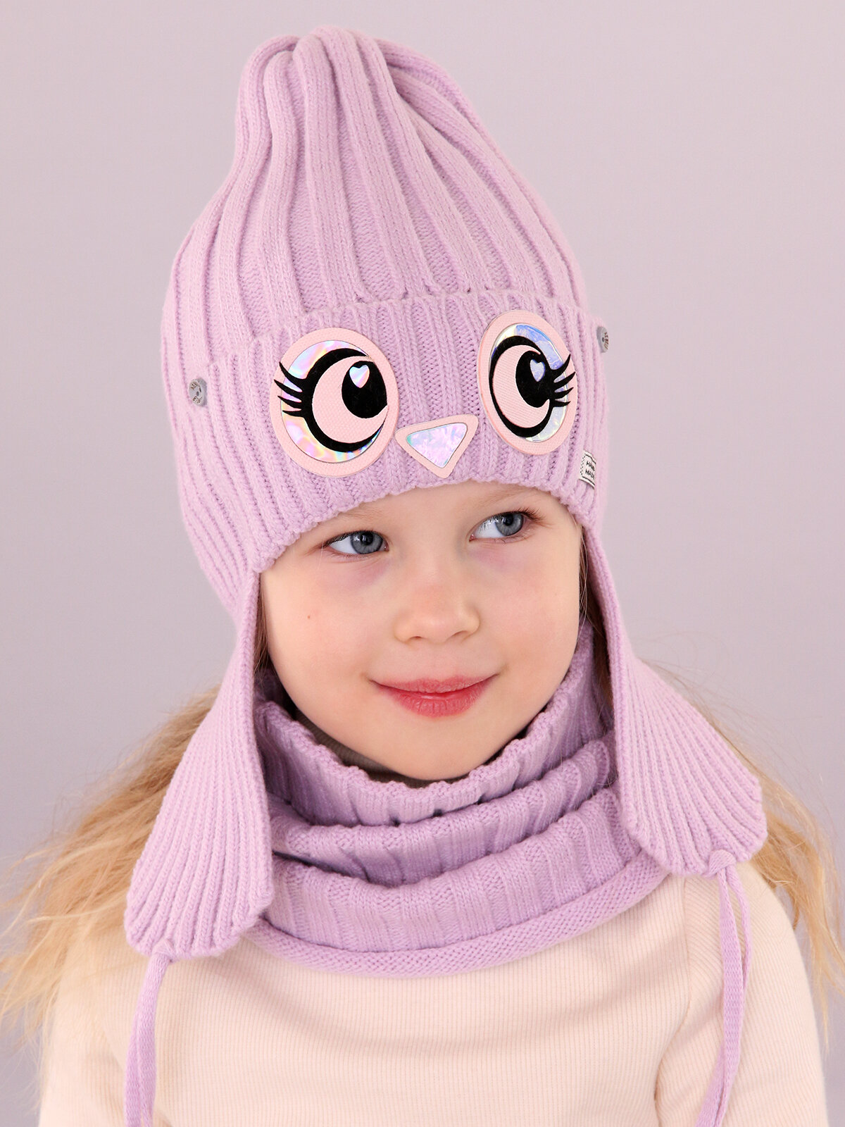 Шапка и снуд с хлопковым подкладом поляярик R01-11 лиловый, 52-54 информация:
