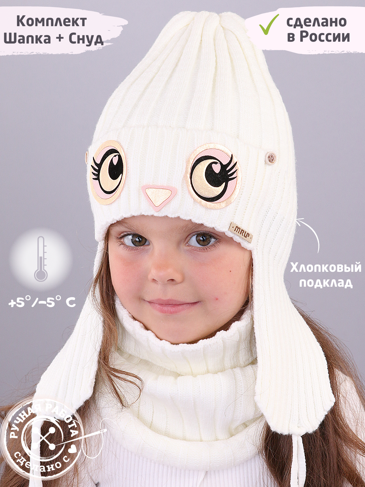 Шапка и снуд с хлопковым подкладом поляярик R01-11 молочный, 52-54 информация: