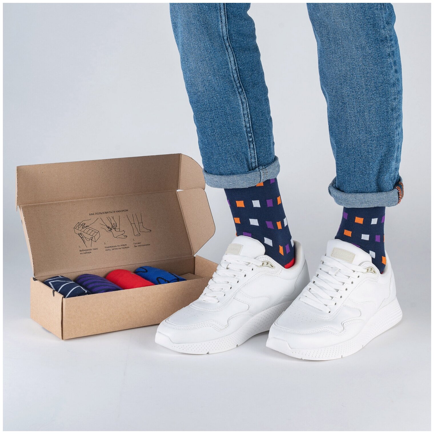 НС-5-205 Набор из 5 пар мужских носков "Нева-Сокс" принт рисунок яркие цветные разноцветные повседневные длинные высокие средние хлопок хб хлопковые коробка комплект подарок