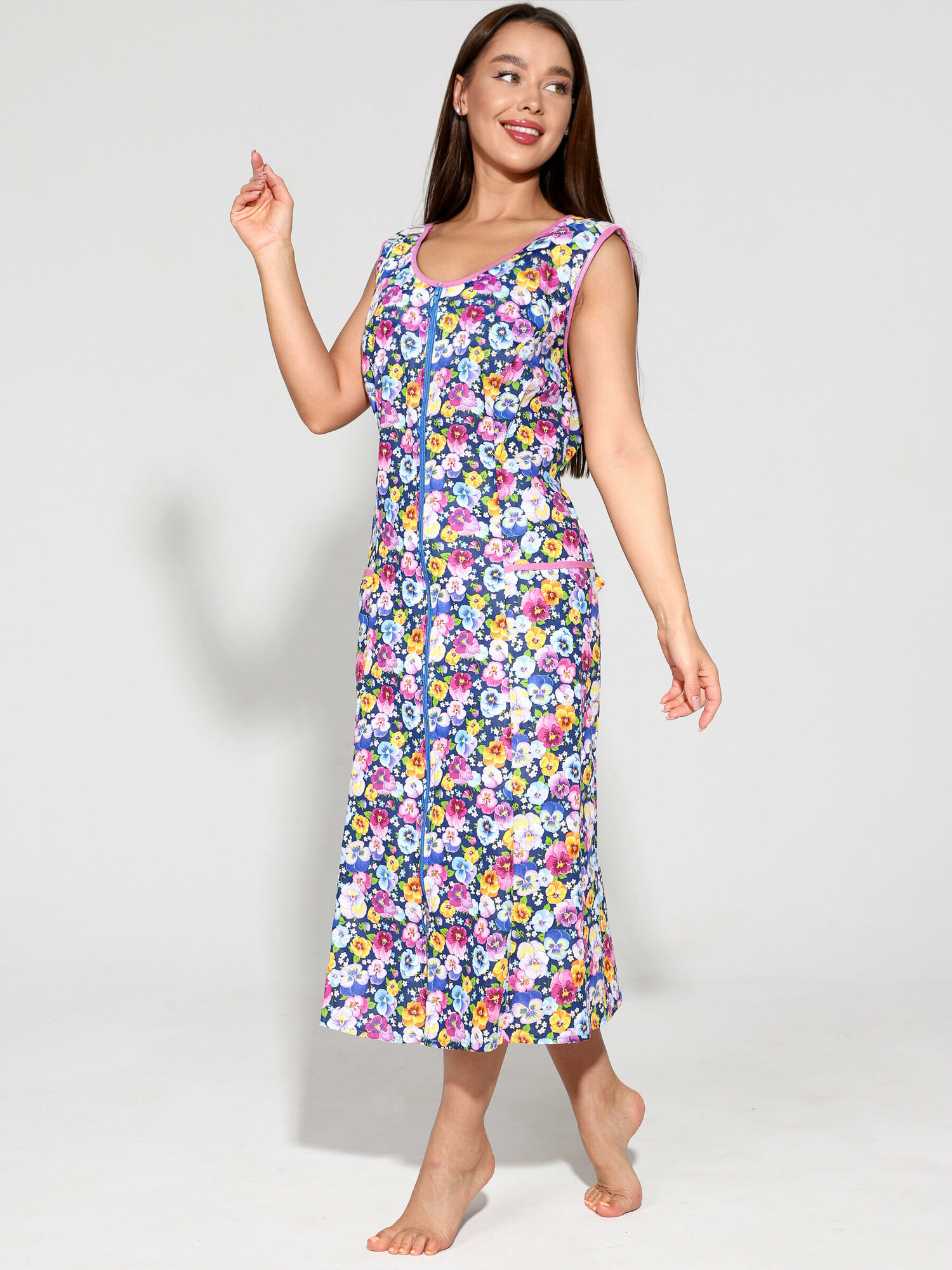 Халат домашний женский на молнии фиолетовые фиалки размер 60