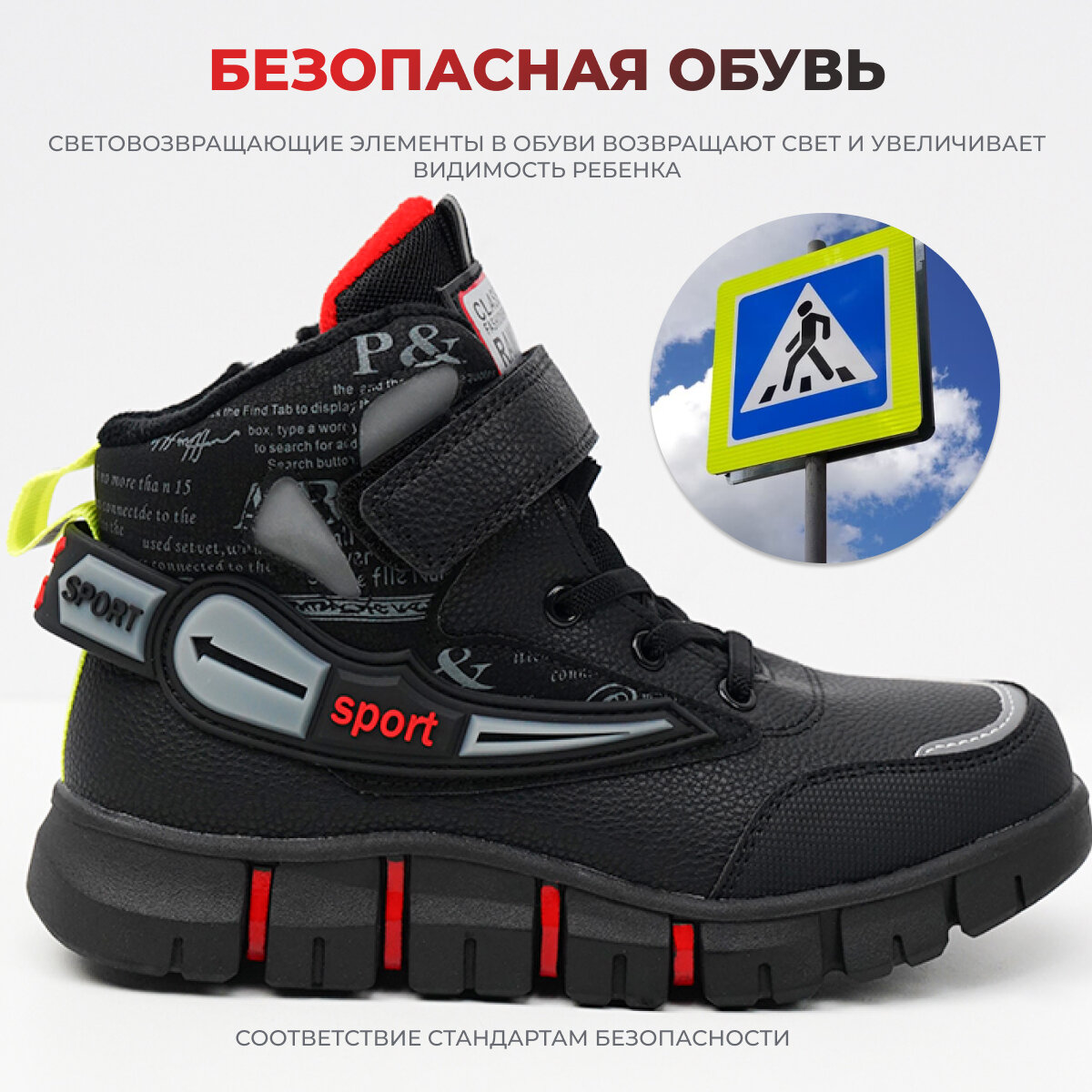 Ботинки детские для мальчика демисезонные, черные 34 информация: