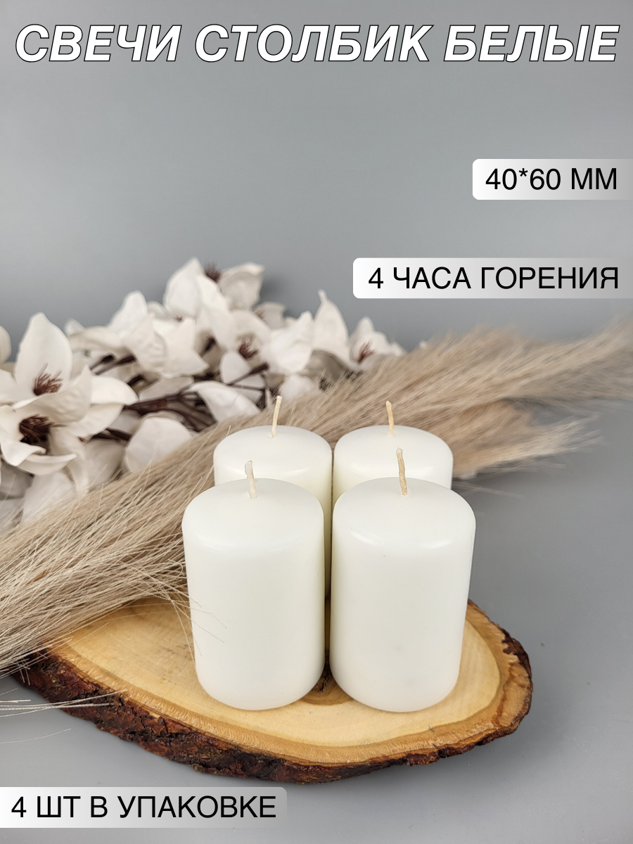Свечи Столбик 60х40 мм, 4 шт, белый информация: