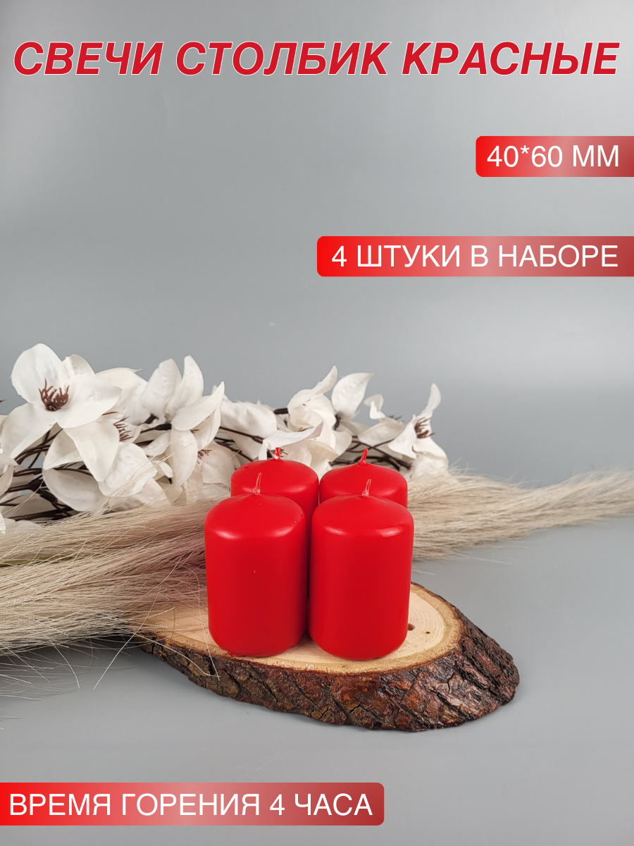 Свечи Столбик 60х40 мм, 4 шт, красный информация: