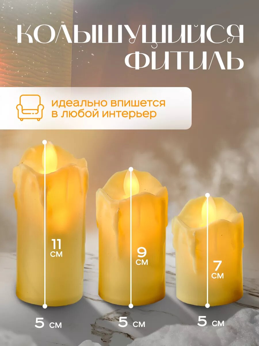 Свечи светодиодные декоративные на батарейках, набор 3 шт. информация: