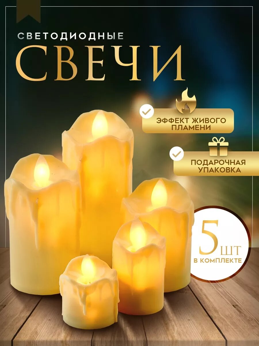 10 цен на Свечи светодиодные декоративные на батарейках, набор 5 шт.