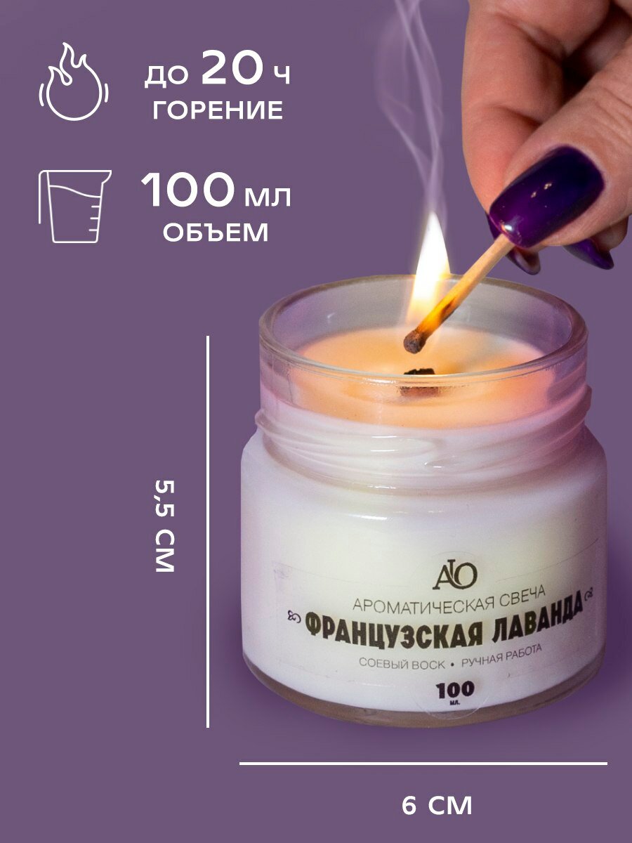 Свеча ароматическая "Французская лаванда" с деревянным фитилем информация: