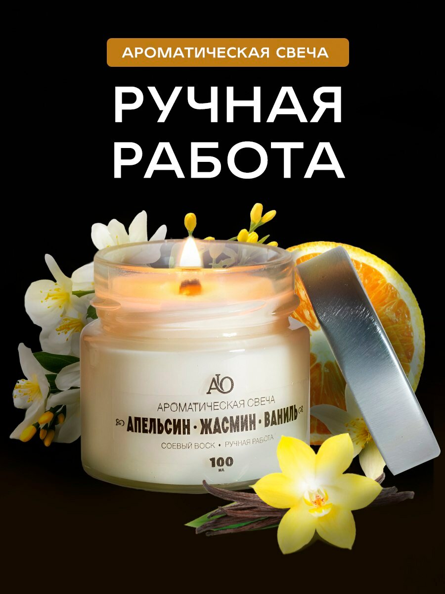 Свеча ароматическая Апельсин Жасмин Ваниль деревянным фитилем информация: