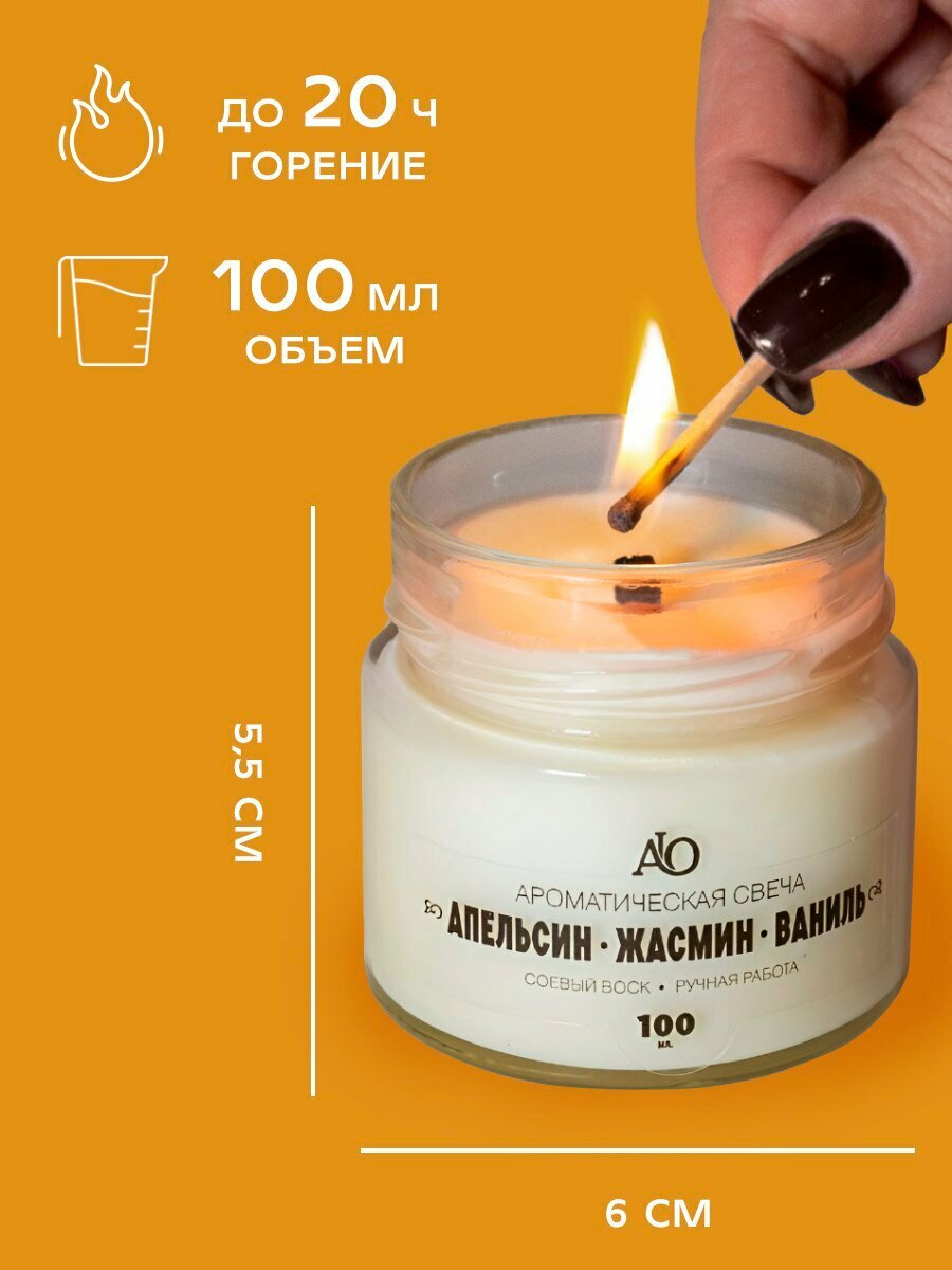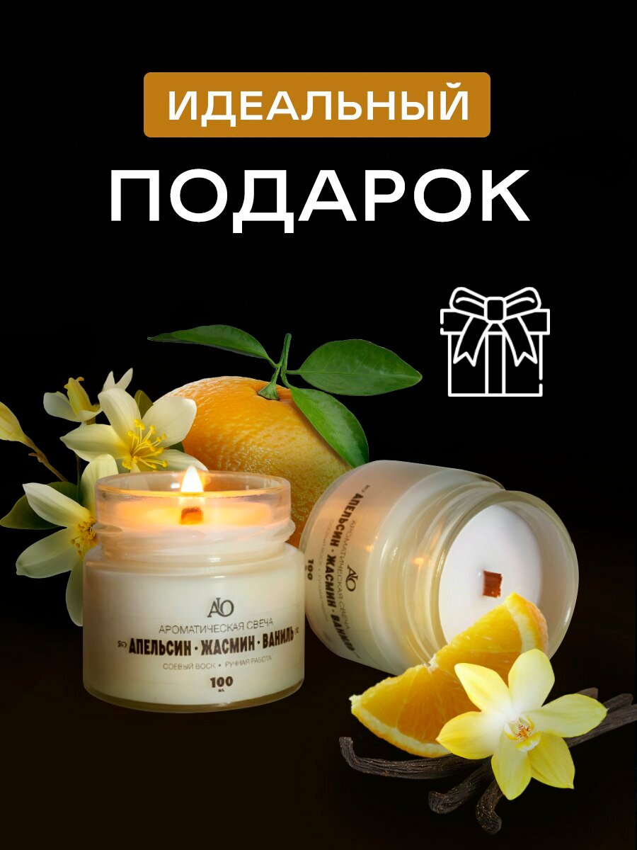 10 цен на Свеча ароматическая Апельсин Жасмин Ваниль деревянным фитилем