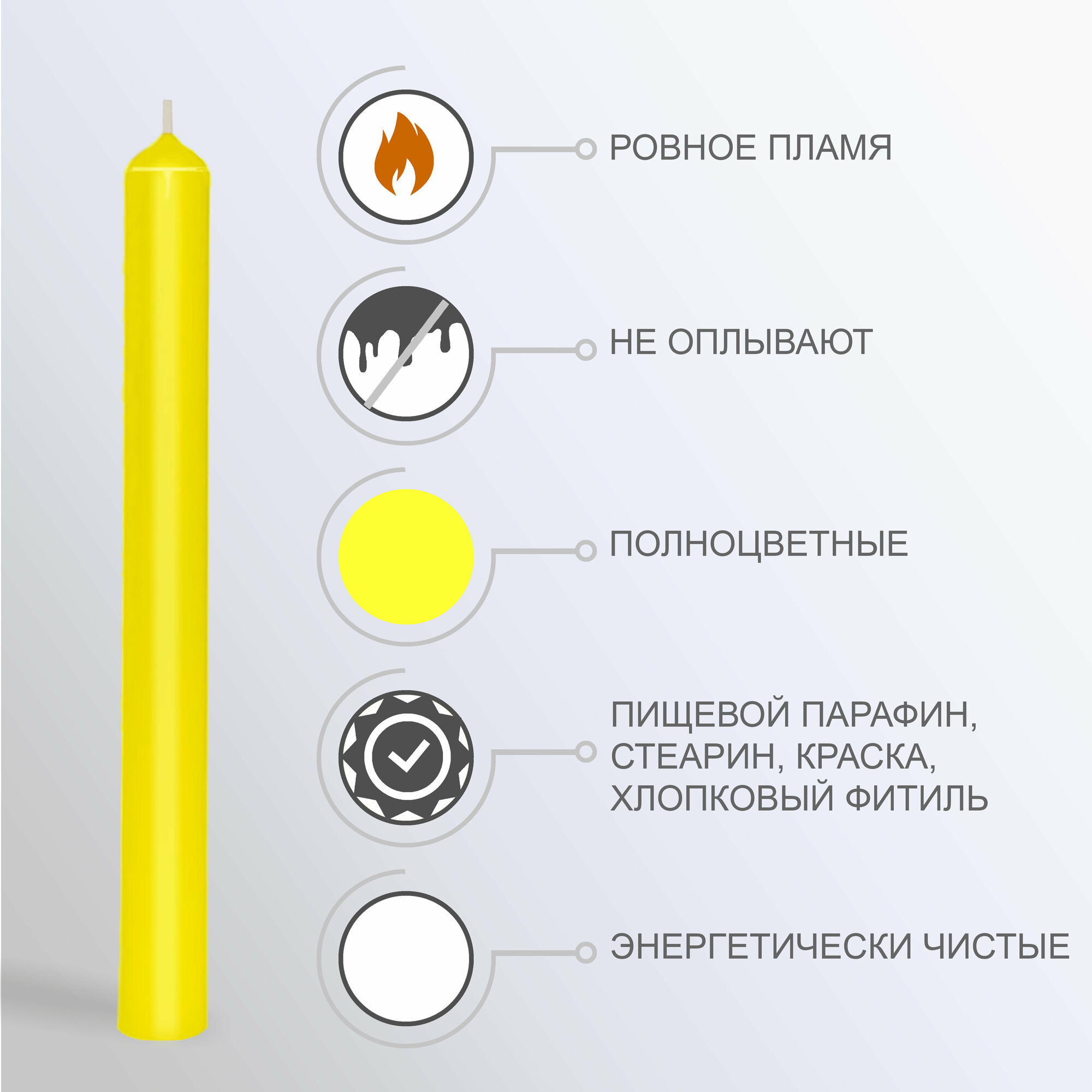 Свечи желтые классика для магии "СвечМаг", 20х2 см, 10 штук информация: