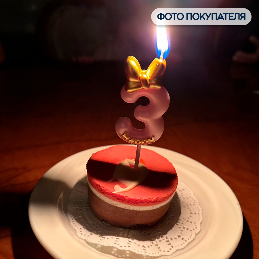 Отзывы на Свеча для торта парафиновая Riota Золотой бант, Цифра 3, розовый, 10 см, 1 шт.