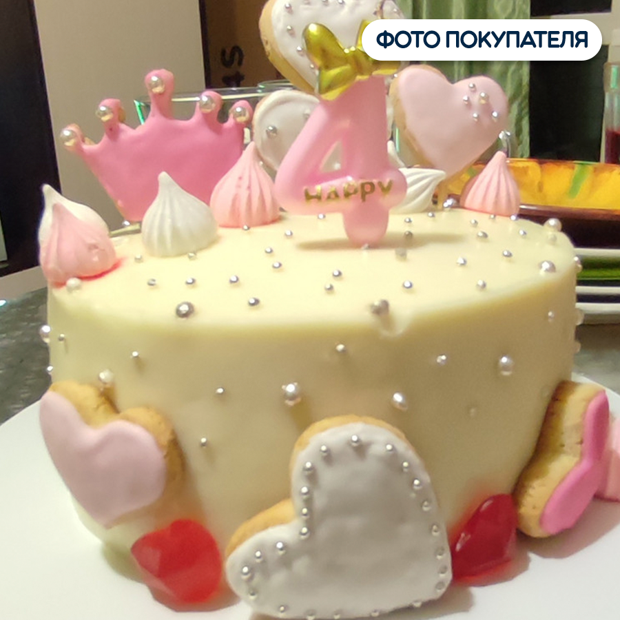 Отзывы на Свеча для торта парафиновая Riota Золотой бант, Цифра 4, розовый, 10 см, 1 шт.