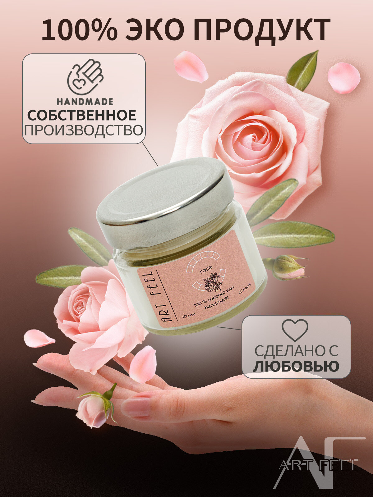 ART FEEL Свеча ароматическая Роза дикая 100 мл информация:
