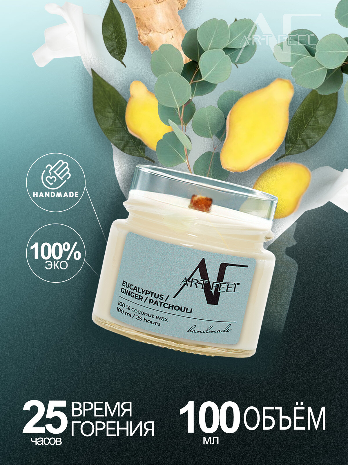 ART FEEL Свеча ароматическая Эвкалипт, пачули, имбирь100 мл информация: