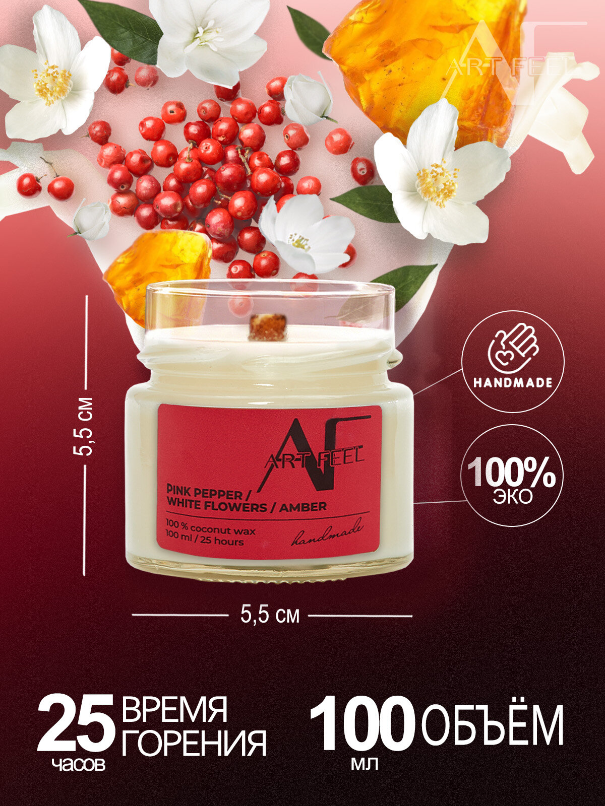 ART FEEL Свеча ароматическая Розовый перец, белые цветы, амбра100 мл информация: