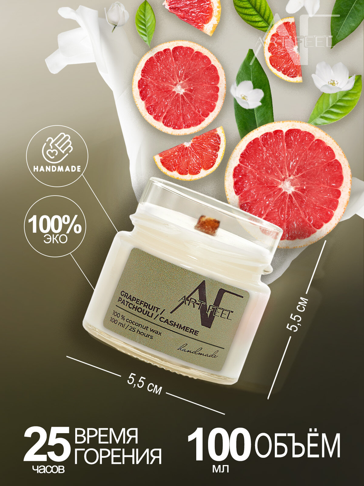 ART FEEL Свеча ароматическая Грейпфрут, пачули, кашемир100 мл информация: