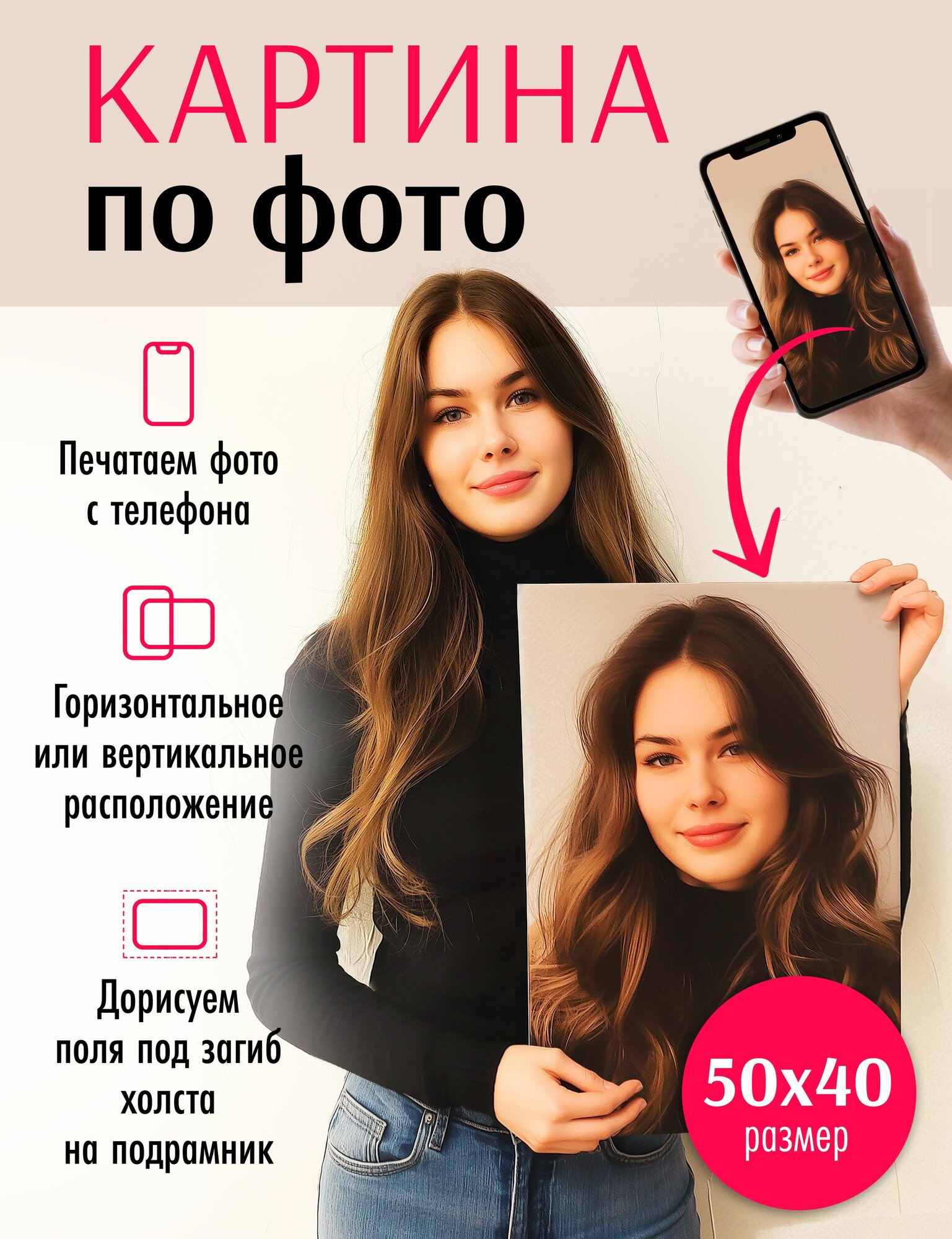 10 цен на Картина по фото / портрет на холсте / фото на холсте 40смх50см К-4050
