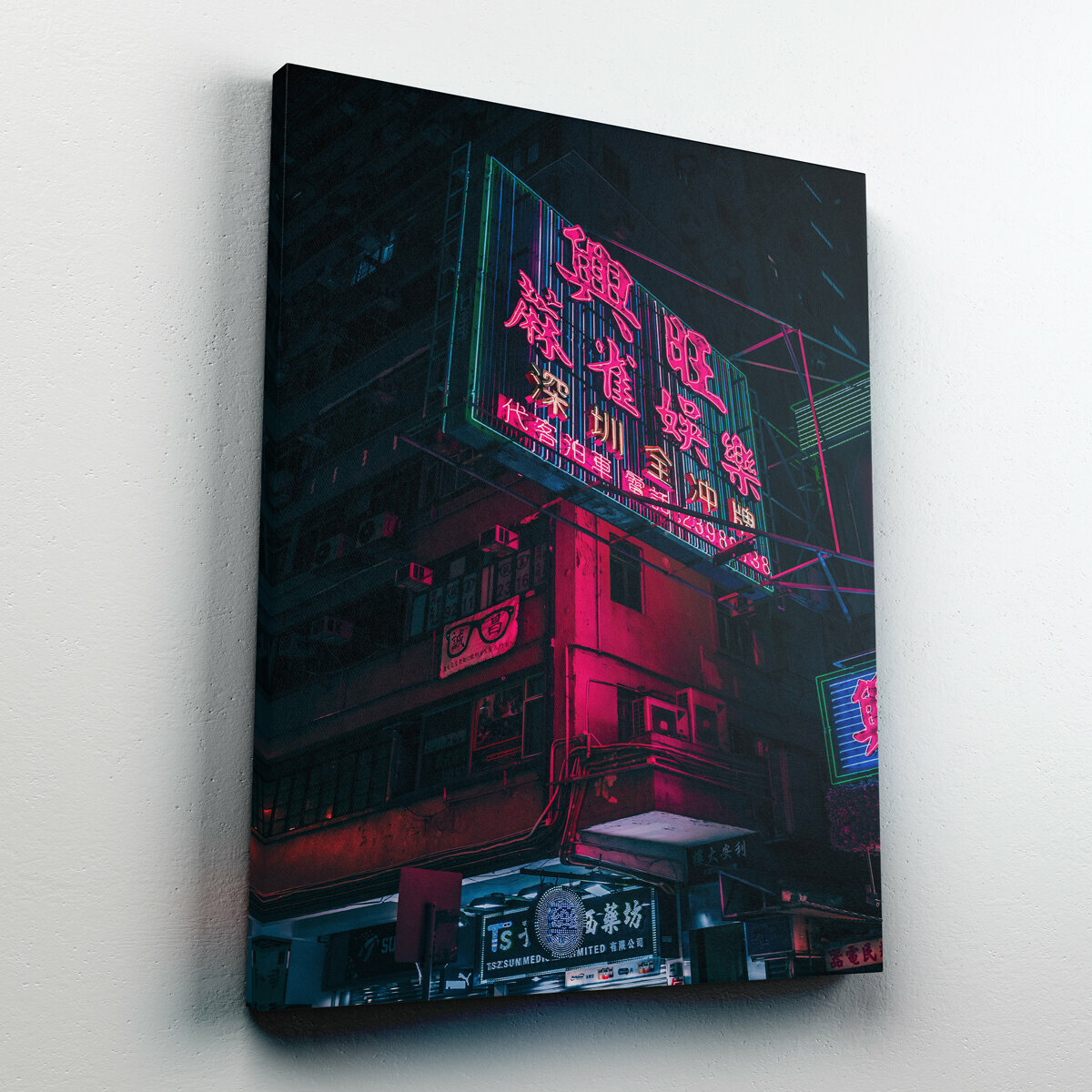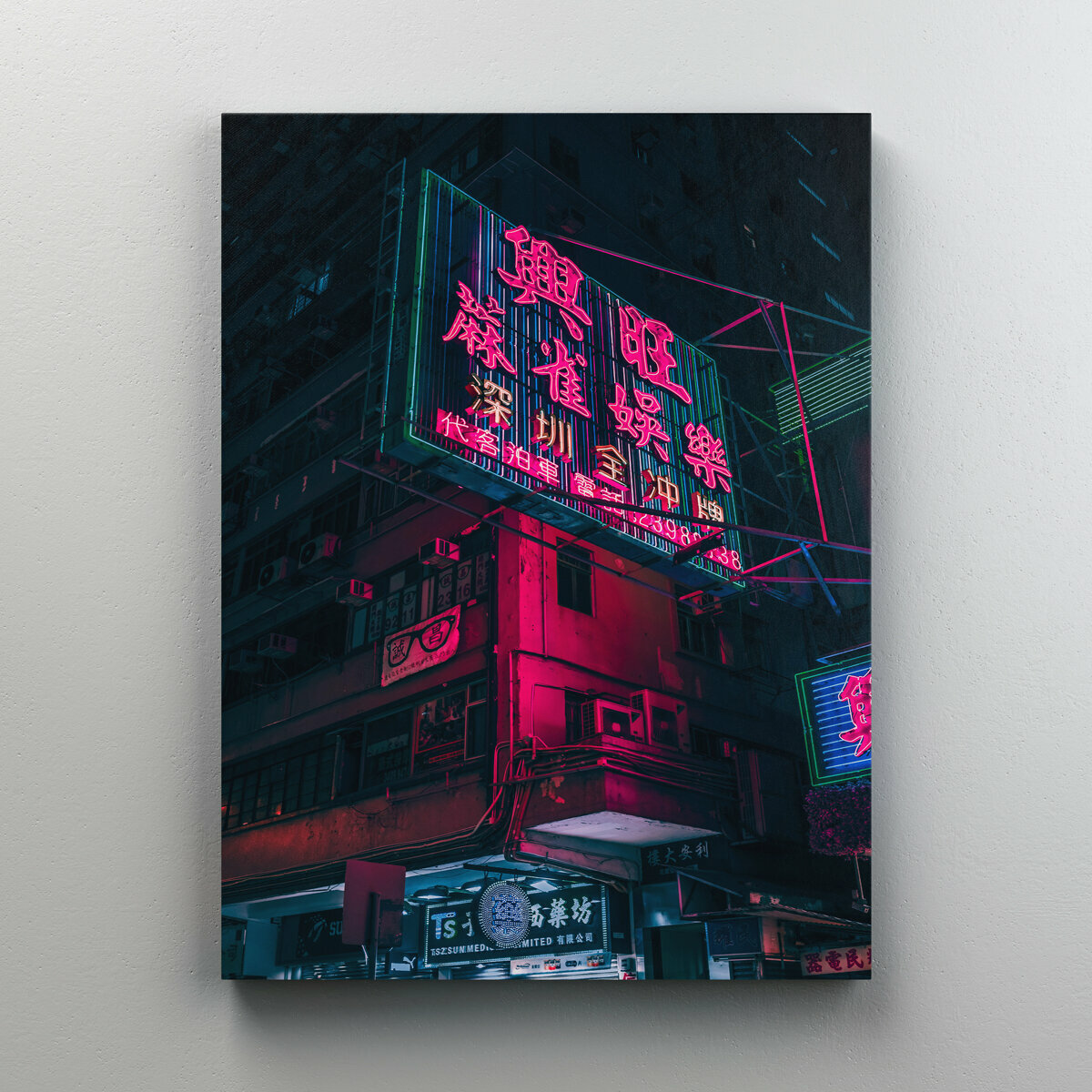 Отзывы на Интерьерная картина на холсте "Неоновая вывеска - китайские иероглифы" архитектура, размер 22x30 см