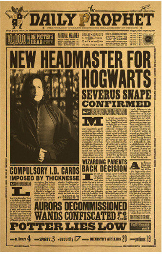 Плакат "Северус Снейп утверждён новым директором Хогвартса" Daily Prophet / Гарри Поттер информация: