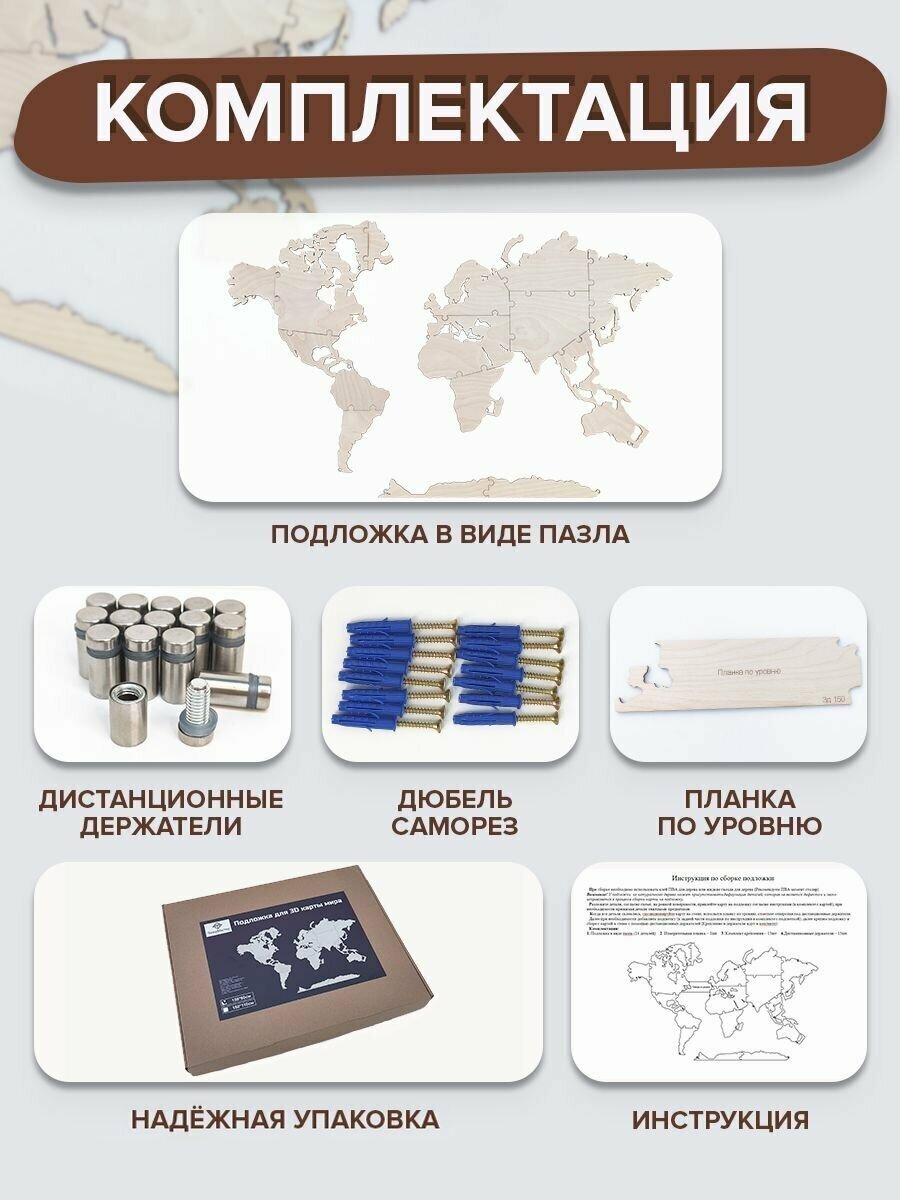 Подложка для карты мира из дерева 180х110см информация: