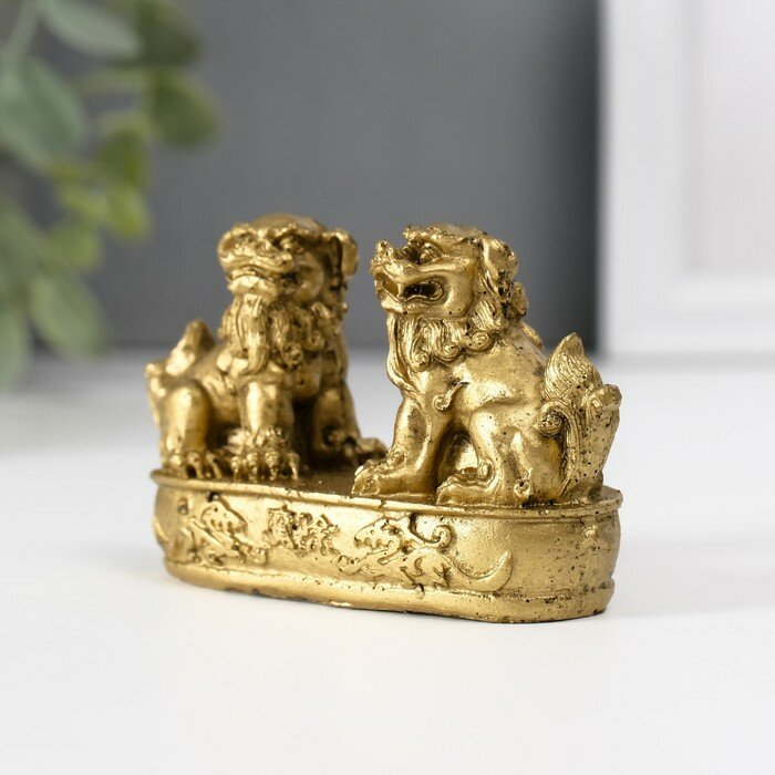 10 цен на Нэцкэ полистоун "Небесные львы (собаки Фу)" бронза 2,8х8,2х5 см