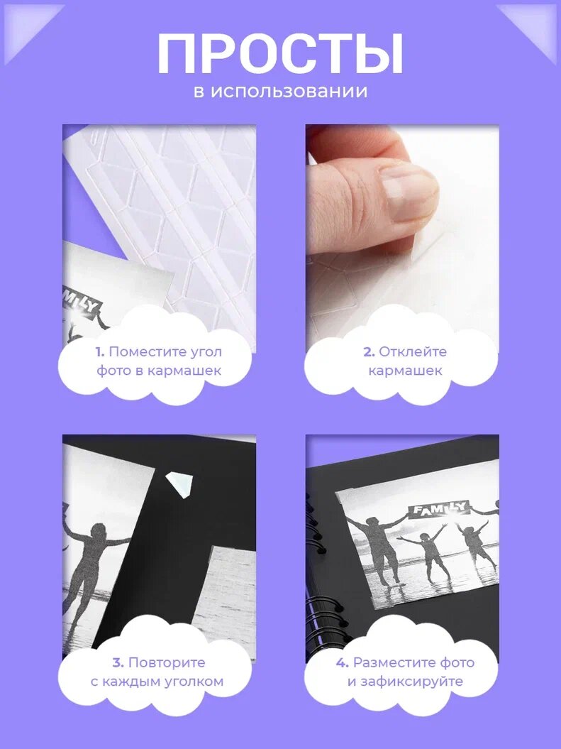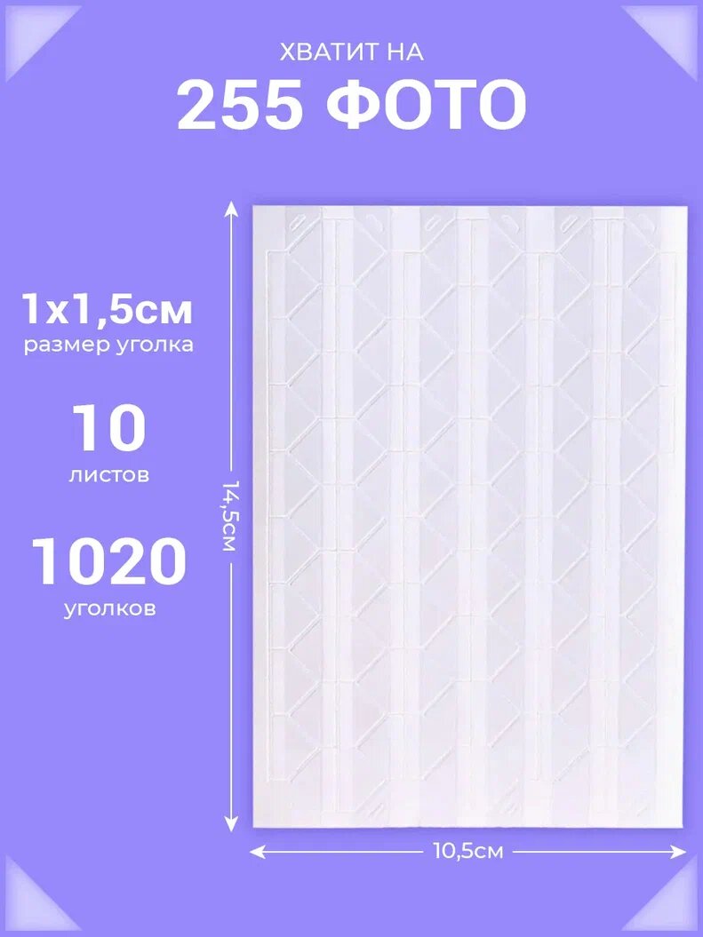 Отзывы на Уголки для фотоальбома самоклеящиеся AXLER держатель для фото в альбом, 1020 штук на 255 фото, прозрачные