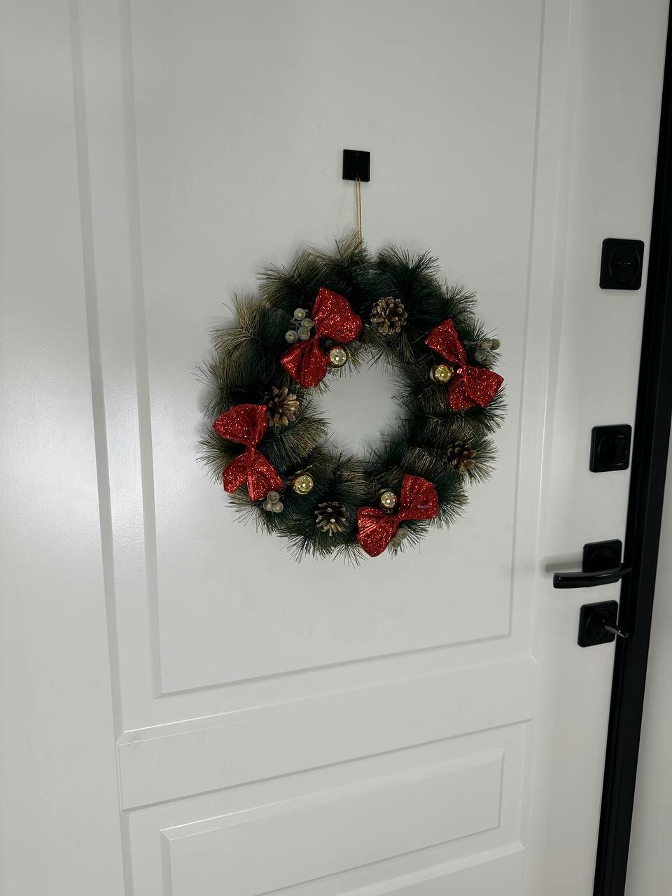 Венок новогодний с ягодами, шарами и шишками, 32 см информация:
