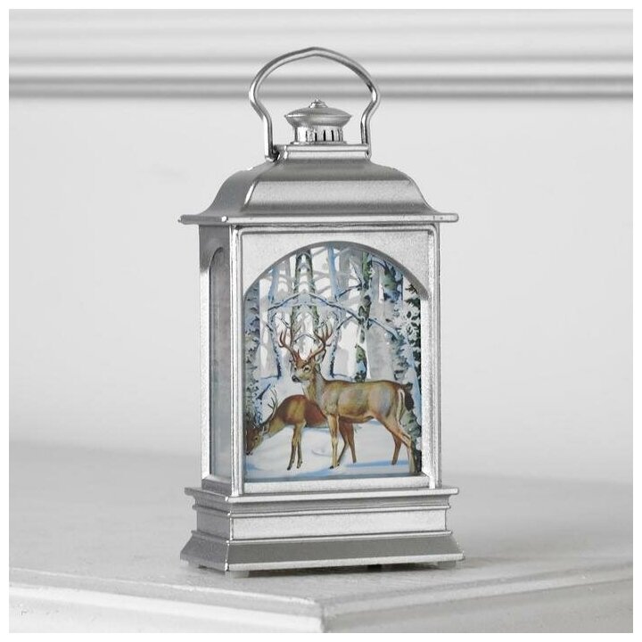 Светодиодная фигура «Серебристый фонарь с оленями» 7 × 13 × 3.5 см, пластик, батарейки AG13х3, свечение тёплое белое информация: