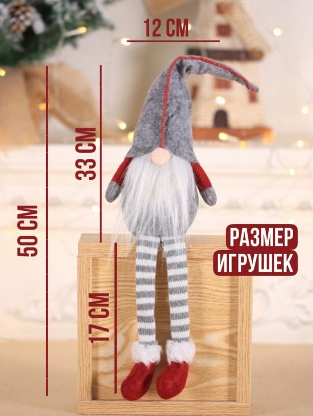 Новогодня игрушка DaV скандинавский гном домовой, мягкая, серый, р-р 50х11 см информация: