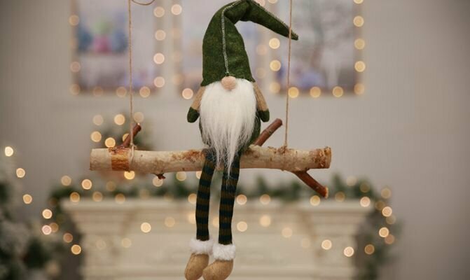 Новогодня игрушка DaV скандинавский гном домовой, мягкая, зеленый, р-р 50х11 см информация: